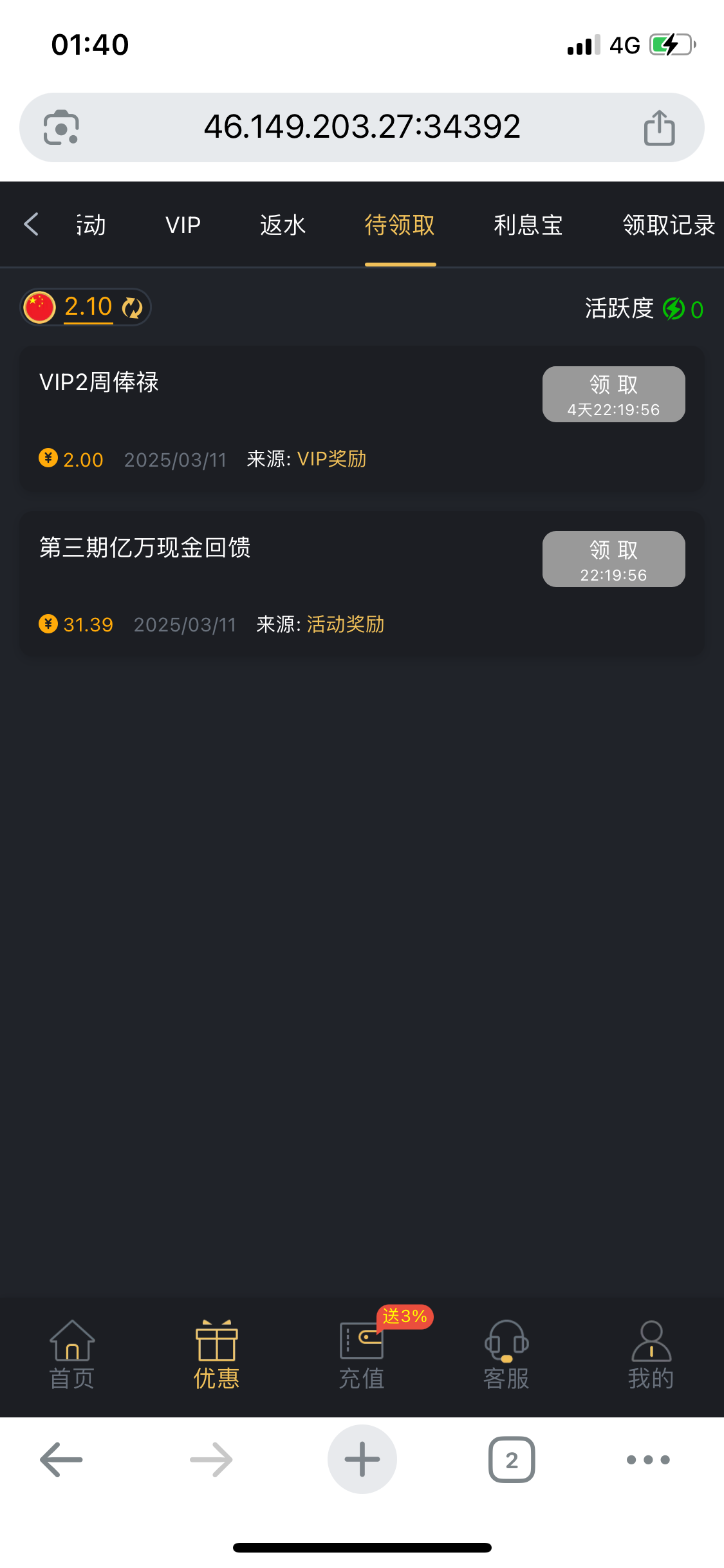 注册充值过的老哥可以领 没充值过的可以登陆看看有没有神秘地址 392.com