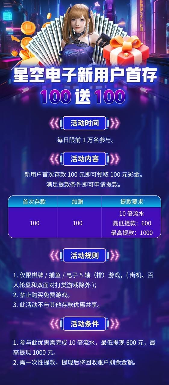 【星空娱乐】⚜️注册送18⚜️100+100