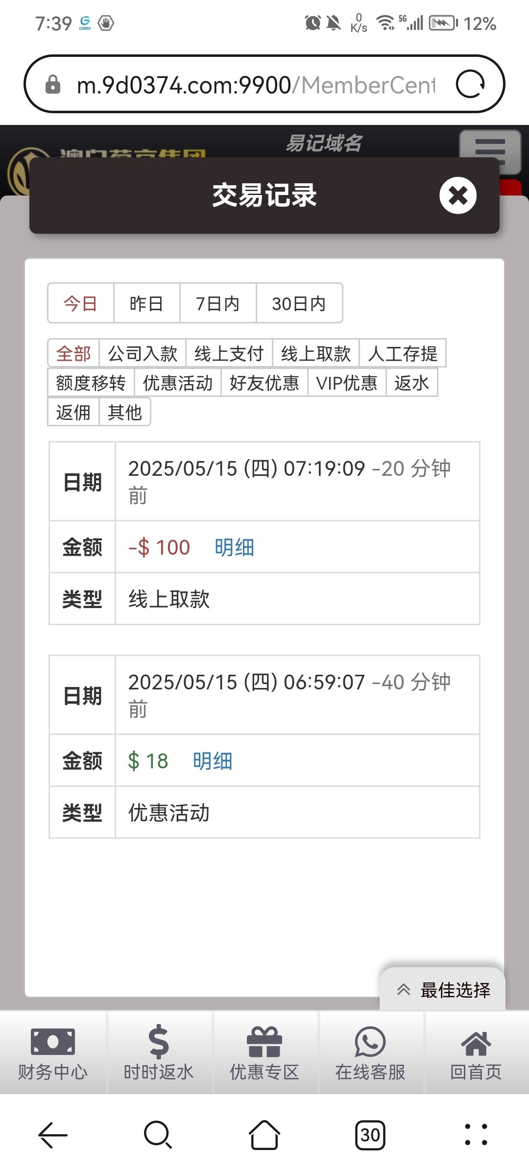 出款情况:自测(